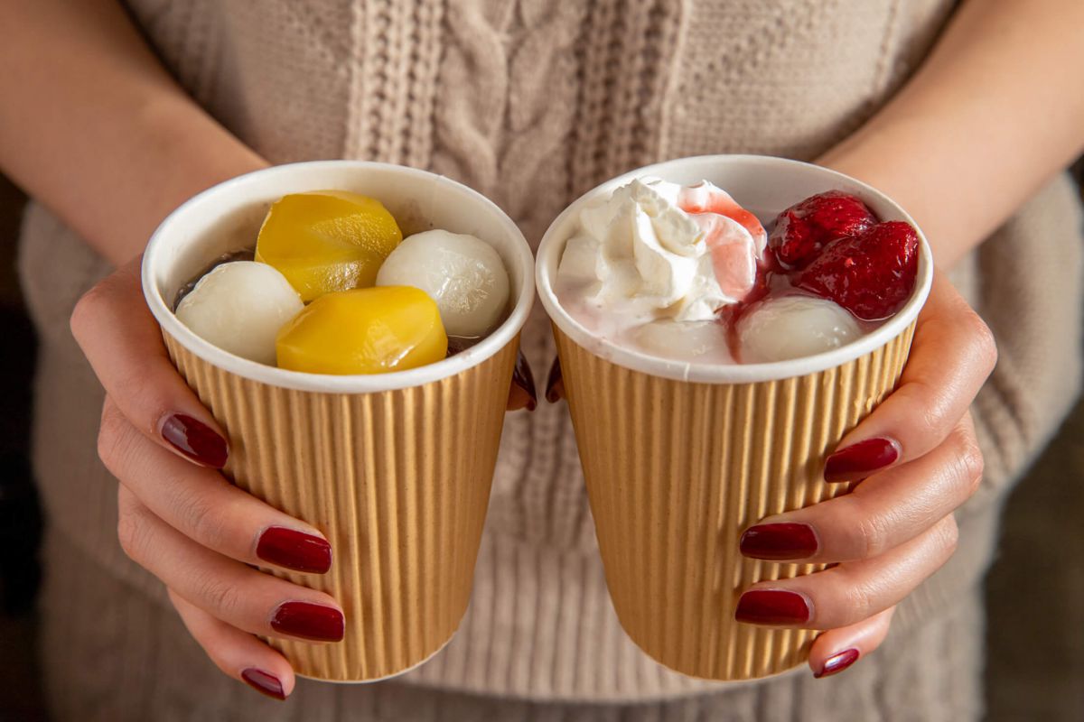 持ち帰りメニューの中からチョイスしたのは、温かいぜんざい(各500円)。5種類の味はどれもおいしそうで、甘いあんこの誘惑に負けた私は、栗ぜんざいといちごぜんざい、2つも注文しちゃいました。