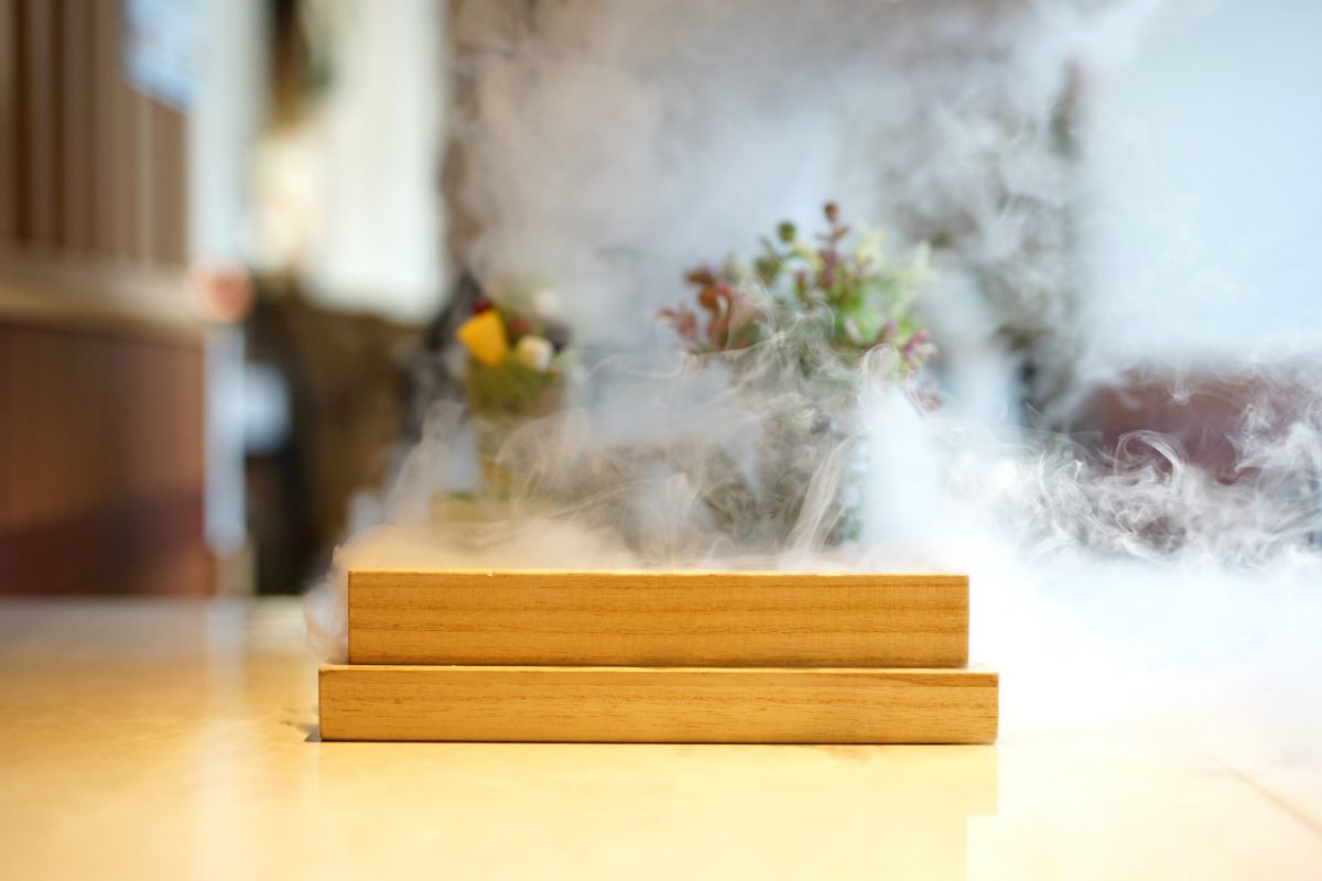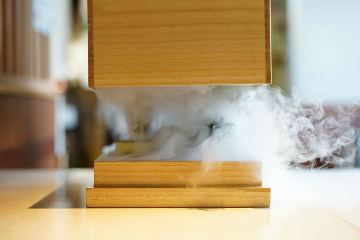 大きな木のボックスを持ち上げると、中からドライアイスで作った煙がぶわっと溢れ…