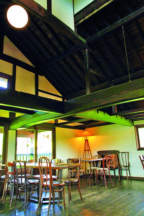 明治時代に建てられらた母屋を改装したレトロな建物は、季節になると入り口にブドウが生い茂ります。