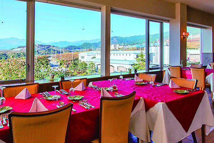 広大なブドウ畑を眼下に眺める「レストラン鳥居平」は、季節の地元食材を使ったメイン料理が自慢のレストラン。自社製ワインを隠し味にした濃厚なソースが食材によくあうと評判です。
