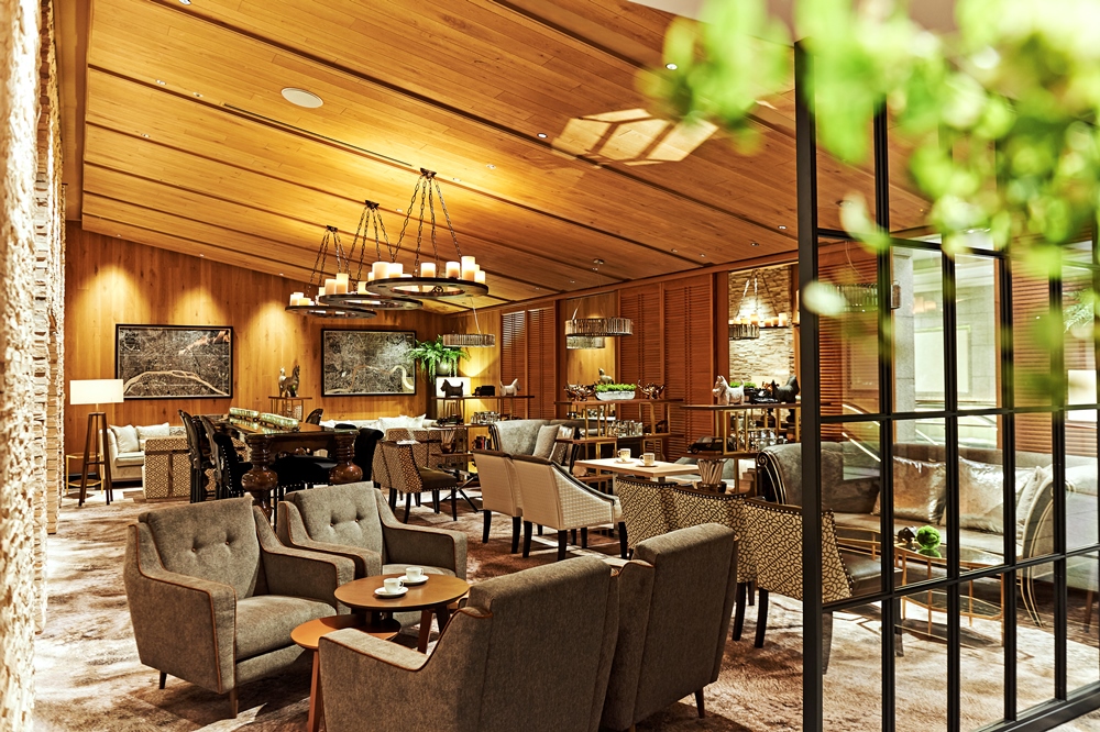 アフタヌーンティーが楽しめるは、あたたかな色味の天然木と石材を配して空間造りがされているラウンジ「タイムネスト」。イタリアの職人が仕上げた座り心地のいいソファなど、時間を忘れてくつろげます。