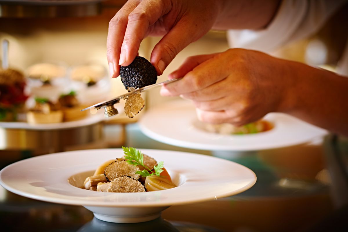 目の前でトリュフをスライスして仕上げてくれるポトフは香りもよく、シェフおすすめの一品です。