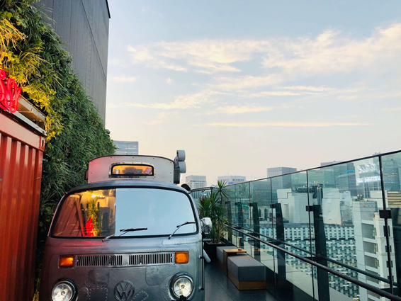 キュートなルーフトップバーで銀座を見下ろしてスパークリング&ホットドッグを!
