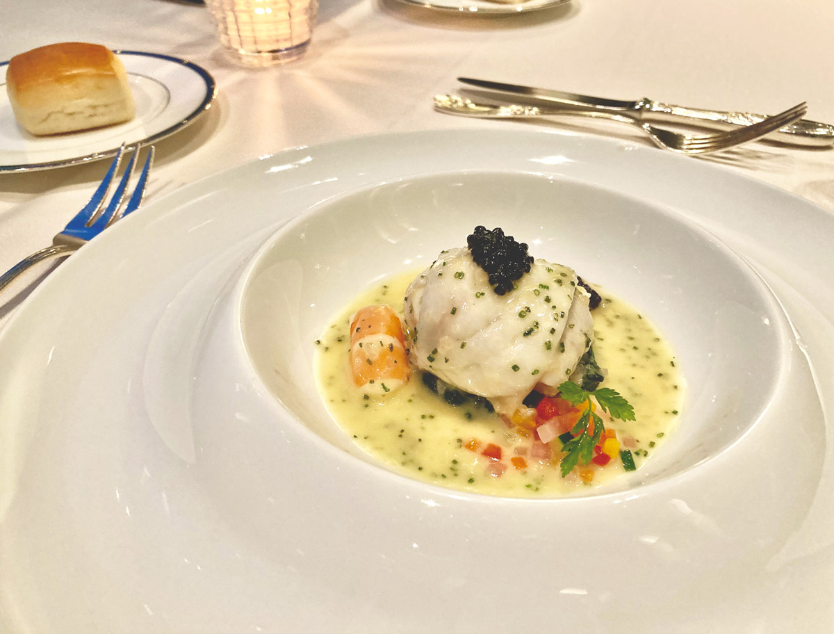 レストランカメリアで人気のスペシャリテであった「舌平目のクッション仕立て」。保管されていたレシピをもとに現料理長がアレンジしたそう。舌平目が包んでいるのはホタテや白身魚のムースでふかふかな食感がたまりません!エシャロットの効いたソース、そしてキャビアが風味に奥行きを持たせてくれます。