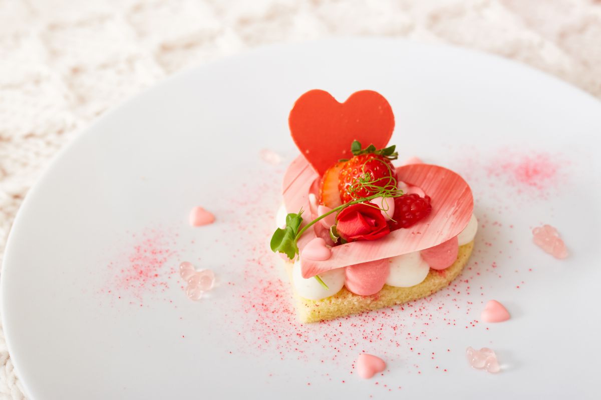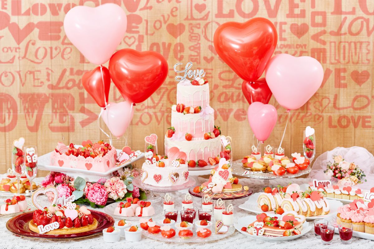 まず、チョコクリームと旬のベリーを使ったファーストディッシュ「たくさんのLOVE」がスタッフからサーブされてスタート。その後、約30個ものいちごを使用したタルト、結婚式でも人気のハート型のショートケーキ、好みでトッピングができるパンケーキ、ティラミス、ムース、パンナコッタ等、見た目も美しいデザート約20種類と軽食を、ビュッフェスタイルで好きなだけ堪能できます。 会場内には、 “LOVE”オブジェのフォトスポットや、LOVEメッセージを交換できるカードも用意。ハートのモチーフがふんだんに散りばめられたデザートビュッフェで、とびきりロマンティックな1日を過ごしてみませんか?