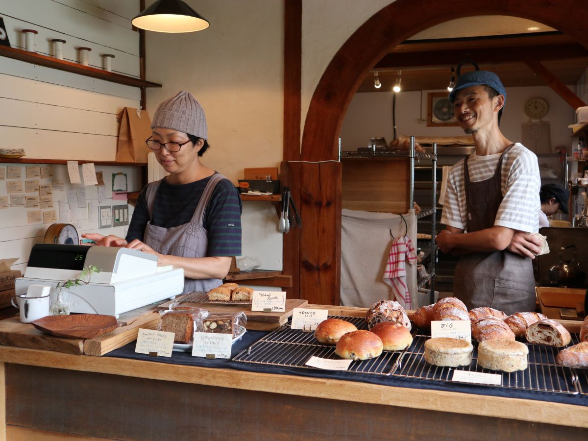 無農薬栽培の小麦を粒のまま仕入れ、毎日お店で挽くのがキビトパン流なんだとか。店名でもあるキビトパンは、小麦粉とライ麦粉から作った天然酵母のパン。 シンプルながら丁寧に焼かれたカンパーニュはもっちりしていて、噛むほどに甘みとほのかな酸味が感じられます。 やわらかな笑顔が絶えない清原さんご夫婦。「パンを通して会話や豊かな時間が盛り上がれば」と訪れてくれるお客さんに気さくに話しかけたり、お客さん同士の会話をつないだり、人の輪が広がっていきます。