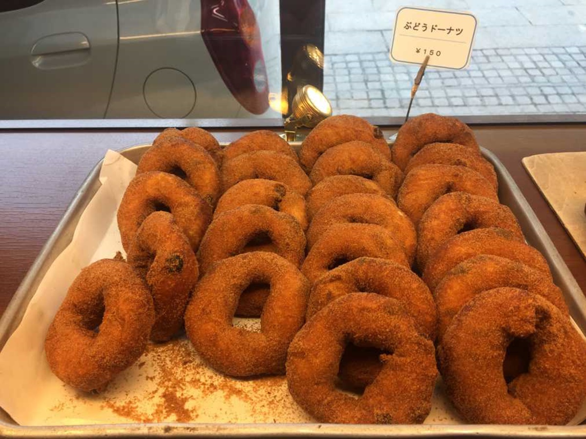 食パンのほかにも、「フロイン堂」では全11種のパンが揃います。食パンと同じ生地に粒餡を包んで揚げる「あんドーナツ」(180円)や、菓子パン生地で作る「ぶどうドーナツ」、大阪のインド料理店「ナビン」から取り寄せるルウを包んで揚げる「カレーパン」なども人気です。
