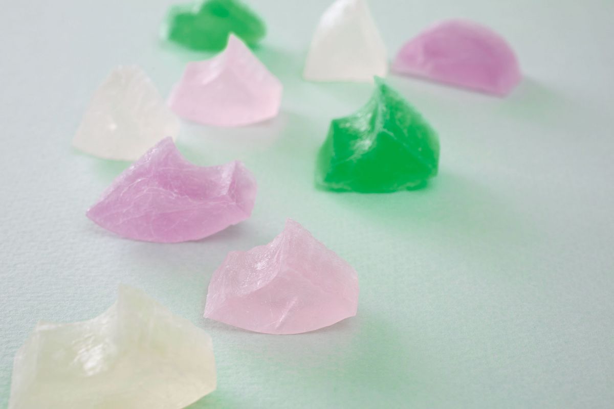 外はシャリッ、中はやわらかい寒天菓子。オレンジ、ミント、スミレ、レモンの5つの味が楽しめます。「虹のかけら」という商品名に、乙女ゴコロをくすぐられます♪