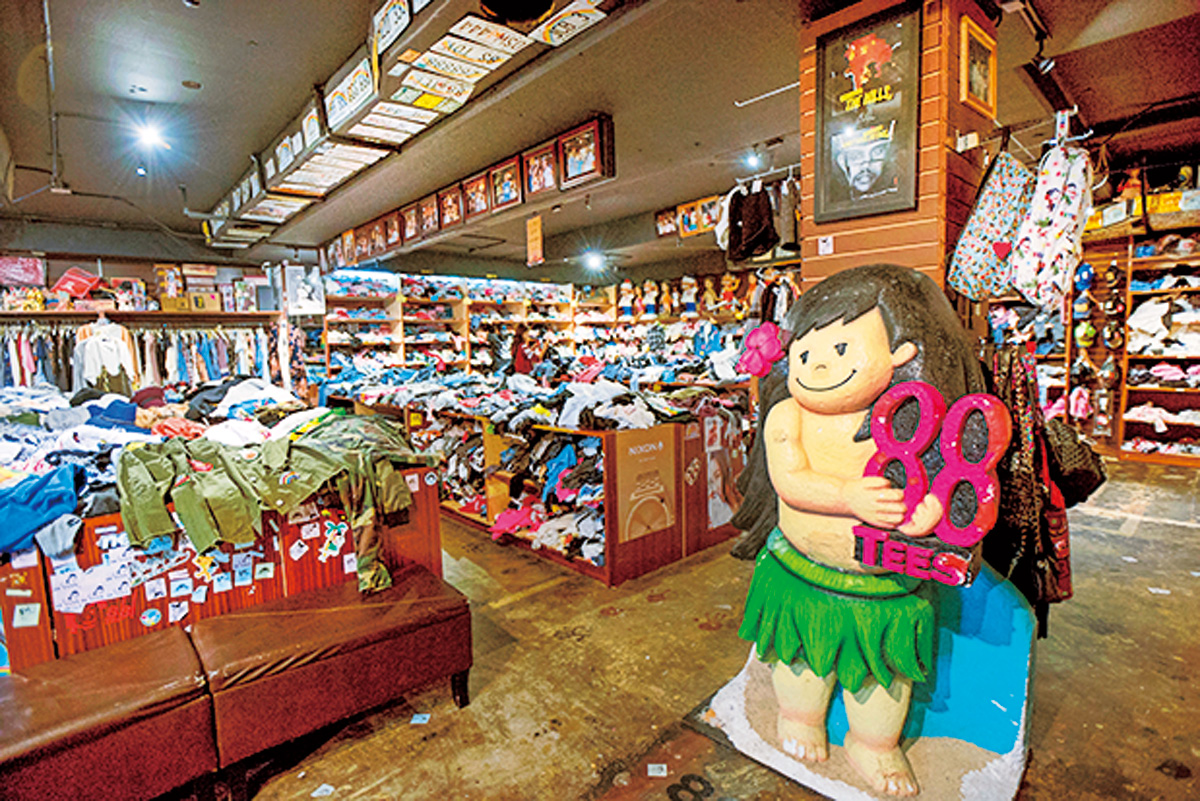 ワイキキを代表する老舗ショップ。オリジナルデザインをはじめポップなTシャツが倉庫のような広い店内にいっぱい!サイズ展開も幅広いので選べるデザインも多くて楽しい!
