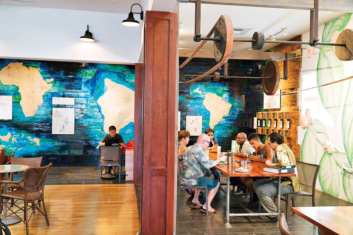 ハワイ島産コナコーヒーに徹底してこだわるお店。どのグレードも高品質で納得の味を提供しています。エクスペリエンス・センターには、コーヒー産地のマップなどハワイのコーヒーに関する展示もあり、ここで焙煎もしているんです。