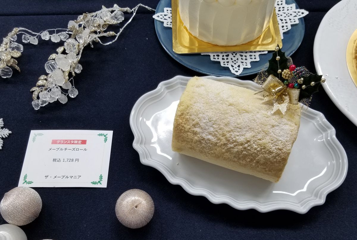 まろやかなマスカルポーネチーズクリームとカナダ産メープルが重なり合う、「ザ・メープルマニア」の大好評ロールケーキです。まるでロールケーキの上に雪が積もったような見た目がクリスマスにもぴったり!「グランスタ」で限定200個のみ予約・購入できる商品です。