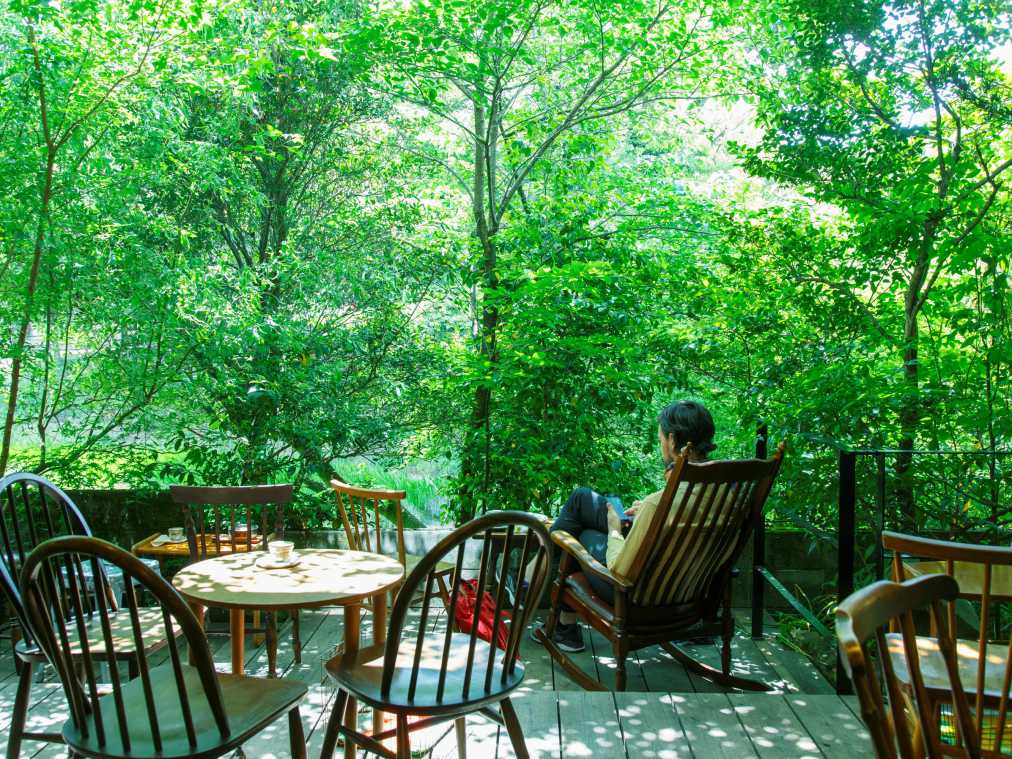 まるで避暑地の森のなかにいるような贅沢感!木漏れ日も小鳥のさえずりも心地よく、最高にピースフルな雰囲気です。