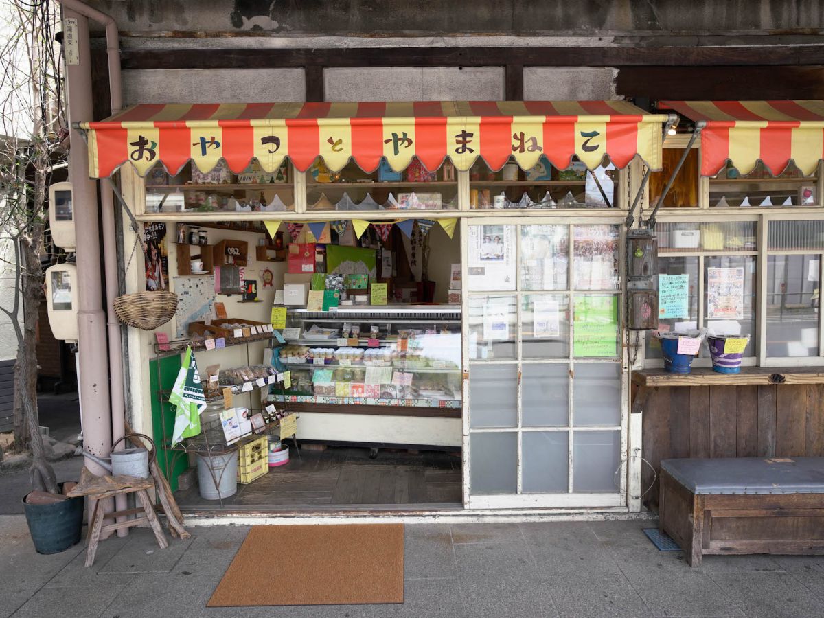 「おやつとやまねこ」があるのは尾道駅から徒歩3分の場所。商店街に向かう道にある、レトロな外観が目をひくお店です。