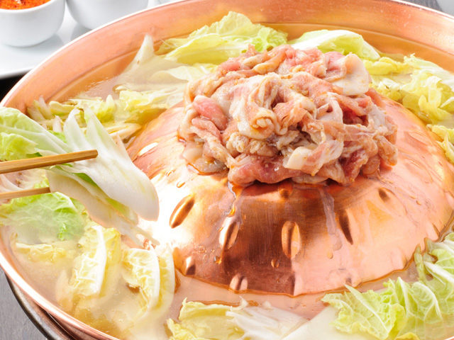 「焼鍋 まつ岡」は、銅鍋の中央で肉を焼きながら、鍋の周りで野菜などの具材をスープで煮て、肉と野菜をたっぷりと味わう台湾生まれの鍋料理「焼鍋」を楽しめる都内唯一の店です。