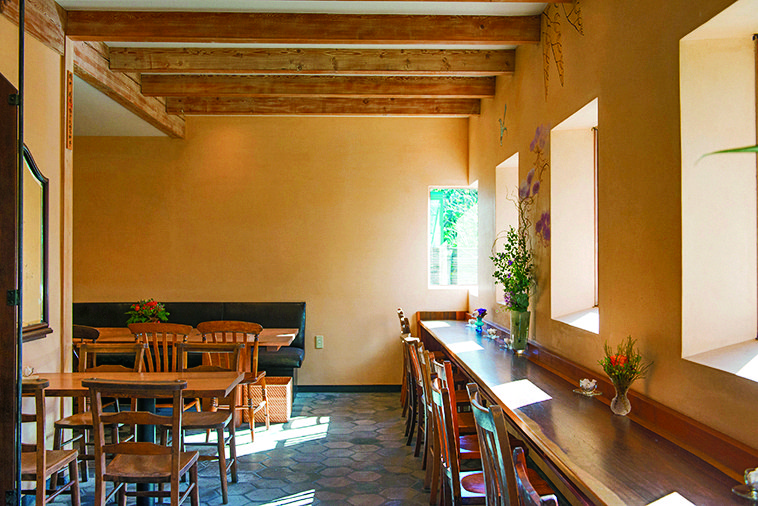 昭和の時代にタイムスリップしたような懐かしい趣きの店内。木の温もりを生かしたテーブル席が並びます。