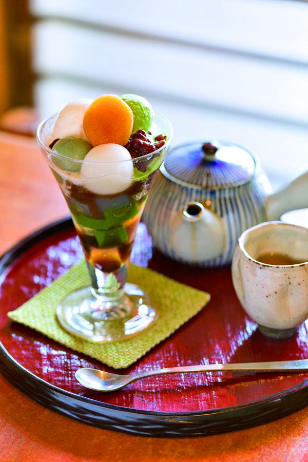 創業65年以上を数える老舗甘味処「納言志るこ店(なごんしるこてん)」。2代目当主が毎朝炊き上げる小豆を使ったしるこや、手作り寒天の入ったクリームあんみつ600円などが評判です。夏季限定で登場するかき氷も人気。