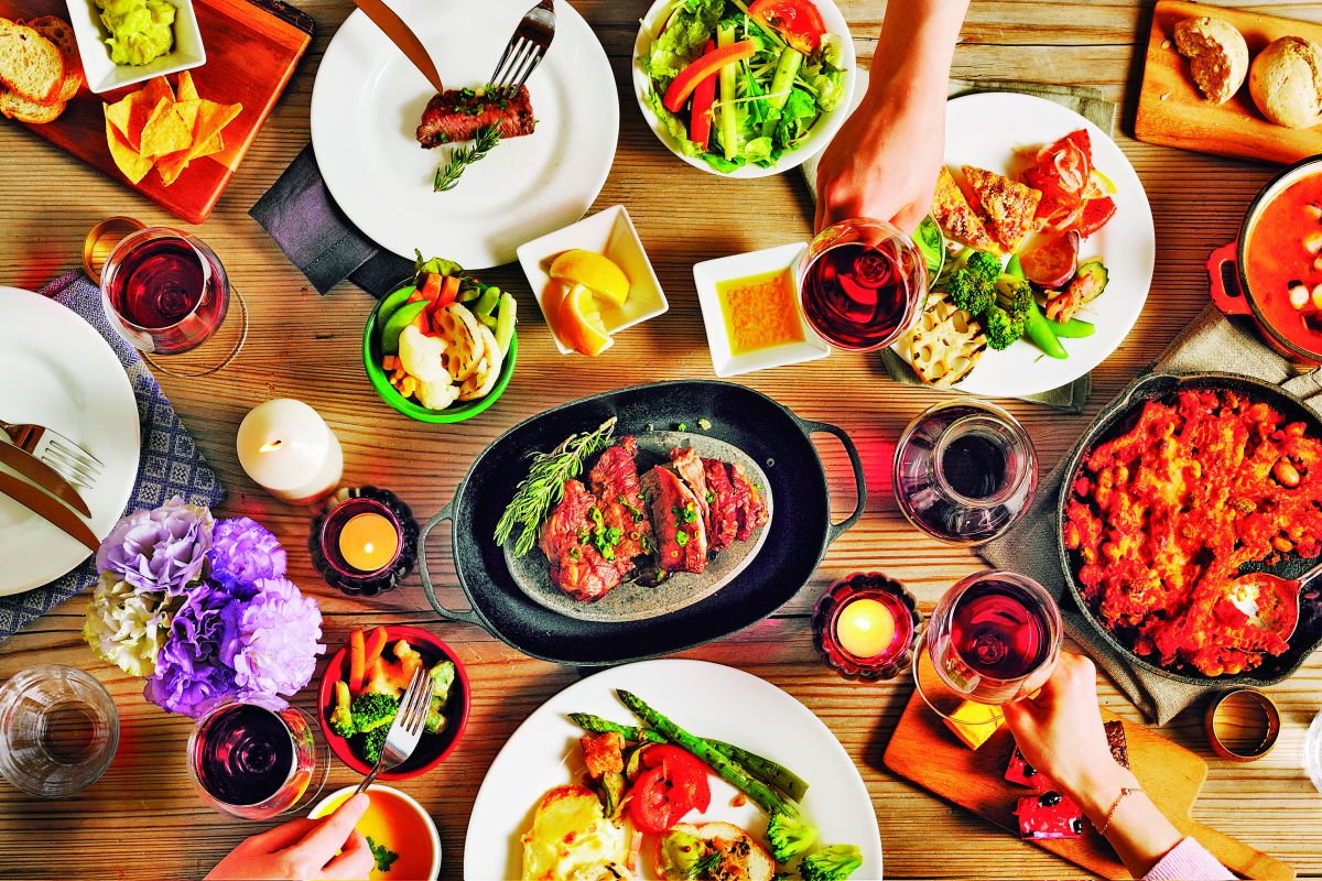 メインダイニング「OTTO SETTE」では野菜とワインのマリアージュディナーを味わえます。ビュッフェスタイルでワインが楽しめる「ワイワイグリル」で、おいしいものがいっぱい。どの料理もワインとの相性抜群です。