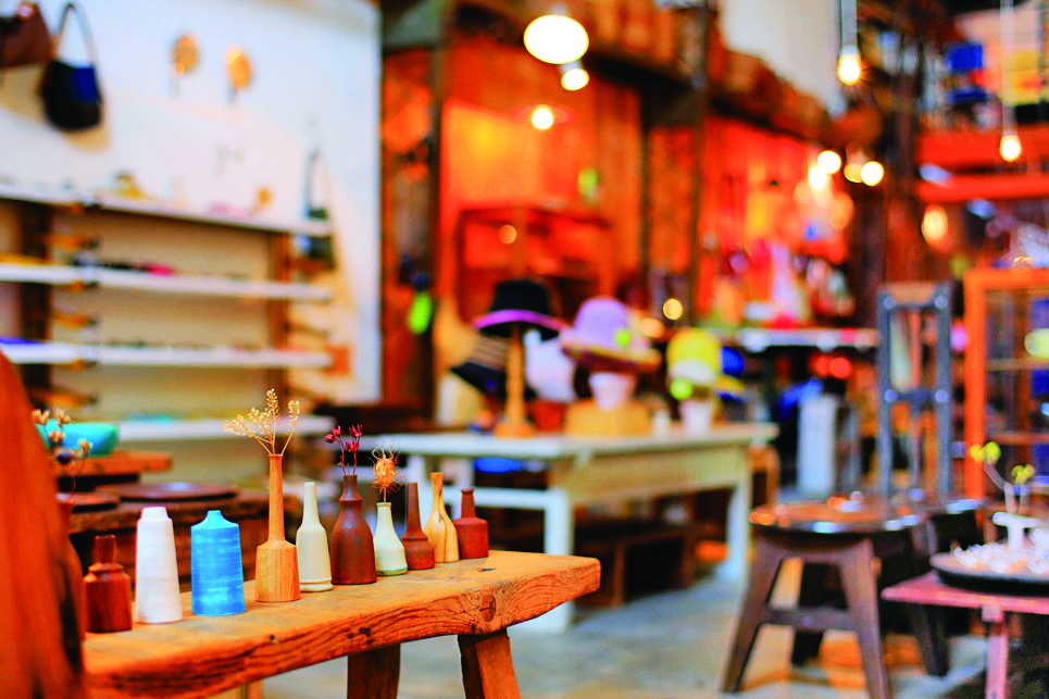酒蔵の道具の製作や修理を行うための“桶場(おけば)”をリノベした雑貨店も敷地内にあります。湘南の作家作品や古道具が揃う「okeba gallery&shop(オケバ ギャラリー アンド ショップ)」には、広々としたアトリエがある約20人の作家やアーティストの作品、ヴィンテージ家具を販売しています。