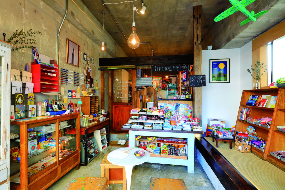 「ants(アンツ)」の店内に一歩入ると、大人も心躍る駄菓子、オーナー厳選の文具がところ狭しと並ぶ夢のような空間が広がります。店舗奥にはスタイリッシュなカフェもあり、利用者には店内にある書籍や児童書などを自由に読むことができます。