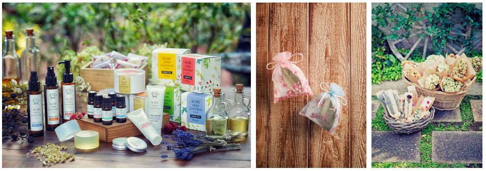 展望インフォメーション前のマーケットでは、クリスマスマーケットフェアが開催されています。布引ハーブ園オリジナルのハーブグッズや園内収穫のドライハーブで作るオリジナルサシェの手作りキット、ハーブ園で育ったローズやあじさいのドライフラワーが並ぶ他、この時季ならではのクリスマスグッズも。