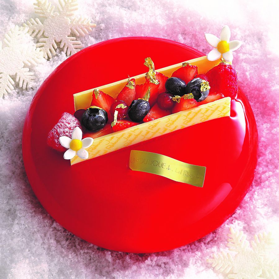 そのほか人気のホテルやパティスリーから、デザインにこだわった存在感たっぷりのクリスマスケーキがたくさん登場しています!ラ ブティック ドゥ ジョエル・ロブション「ノエル フレーズ」は、真っ赤な色とたくさんのベリーが目を引く一品。イチゴとフランボワーズの甘酸っぱいムースとジュレが、口の中いっぱいに広がります。