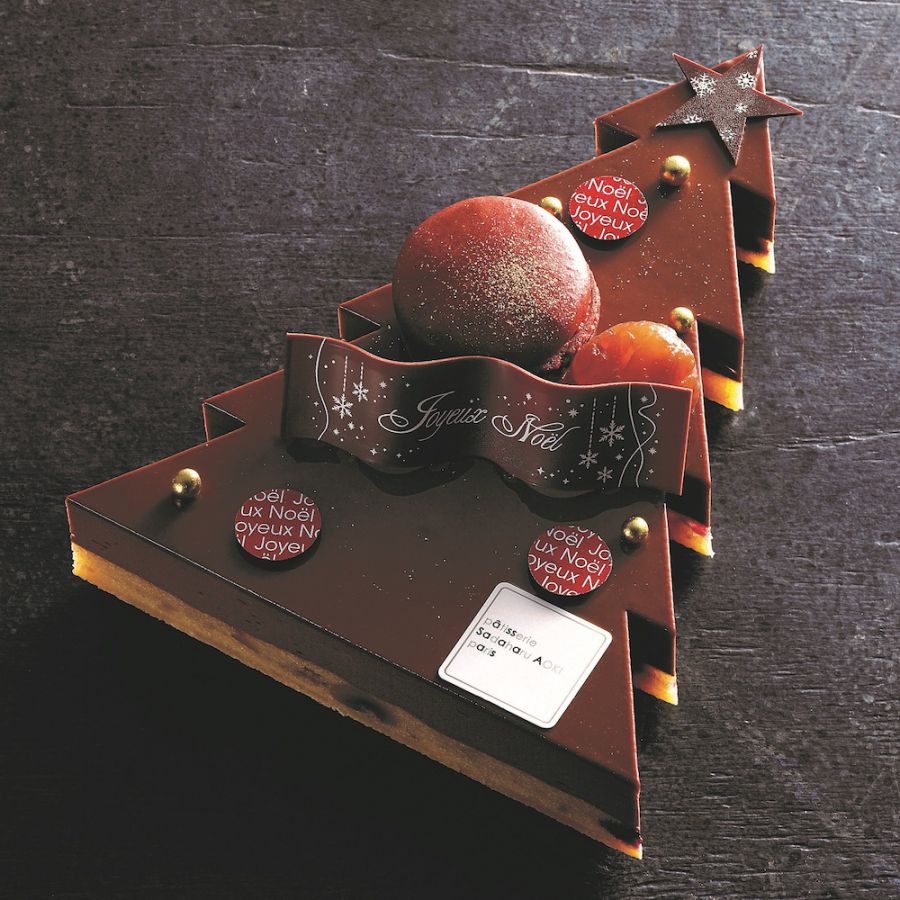 パティスリー・サダハル・アオキ・パリ「サパン モン ドール」はクリスマスツリーをかたどった、とってもかわいらしいケーキ!ラム酒香るマロンがアクセントになった、カシス入りのアーモンドクリームとショコラクリームのケーキです。大人な味わいを楽しめます。