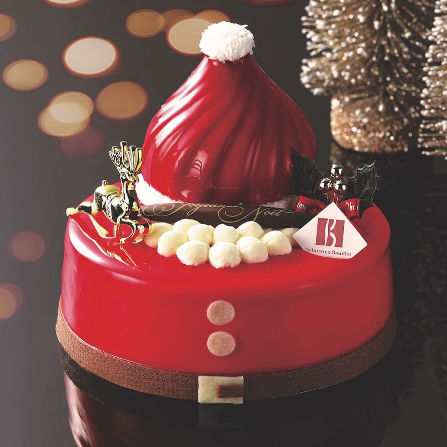 セバスチャン・ブイエ「ペールノエル」は、サンタクロースをイメージしたケーキです!フランボワーズのムースやジュレ、レモンクリームが甘酸っぱい味わい。目を引く真っ赤なサンタクロースケーキで、一気にパーティーが華やかになりますね!