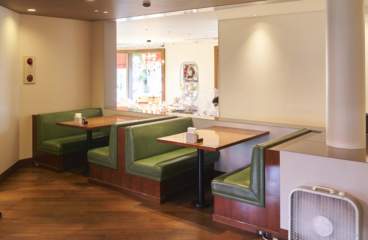 中に入ると、美しいシャンデリアとタイルがお出迎え。スイーツファンならずとも、テンションアップ間違いなしのインテリアですよね。広々としたフロアなので、陳列されたスイーツたちをゆっくり眺めながら、吟味することができます。