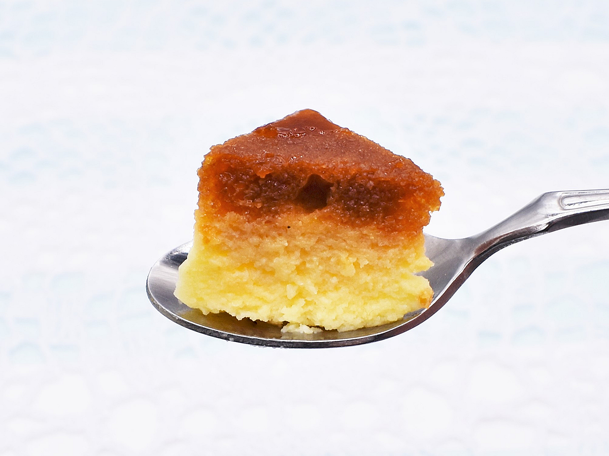 パッケージを開けると、茶色と黄色の“チーズケーキ”が登場。どう見ても“プリン”なその姿に、誰もが思わず「プリン!?」とリアクションしてしまうはずです。さらに、スプーンですくってみてもプルプルと揺れるからびっくり。これまで見たこともない謎スイーツに、ネット上からも「プリンな見た目のチーズケーキって斬新すぎない?(笑)」「どんな味かまったく想像がつかない…」などの声が上がっていました。