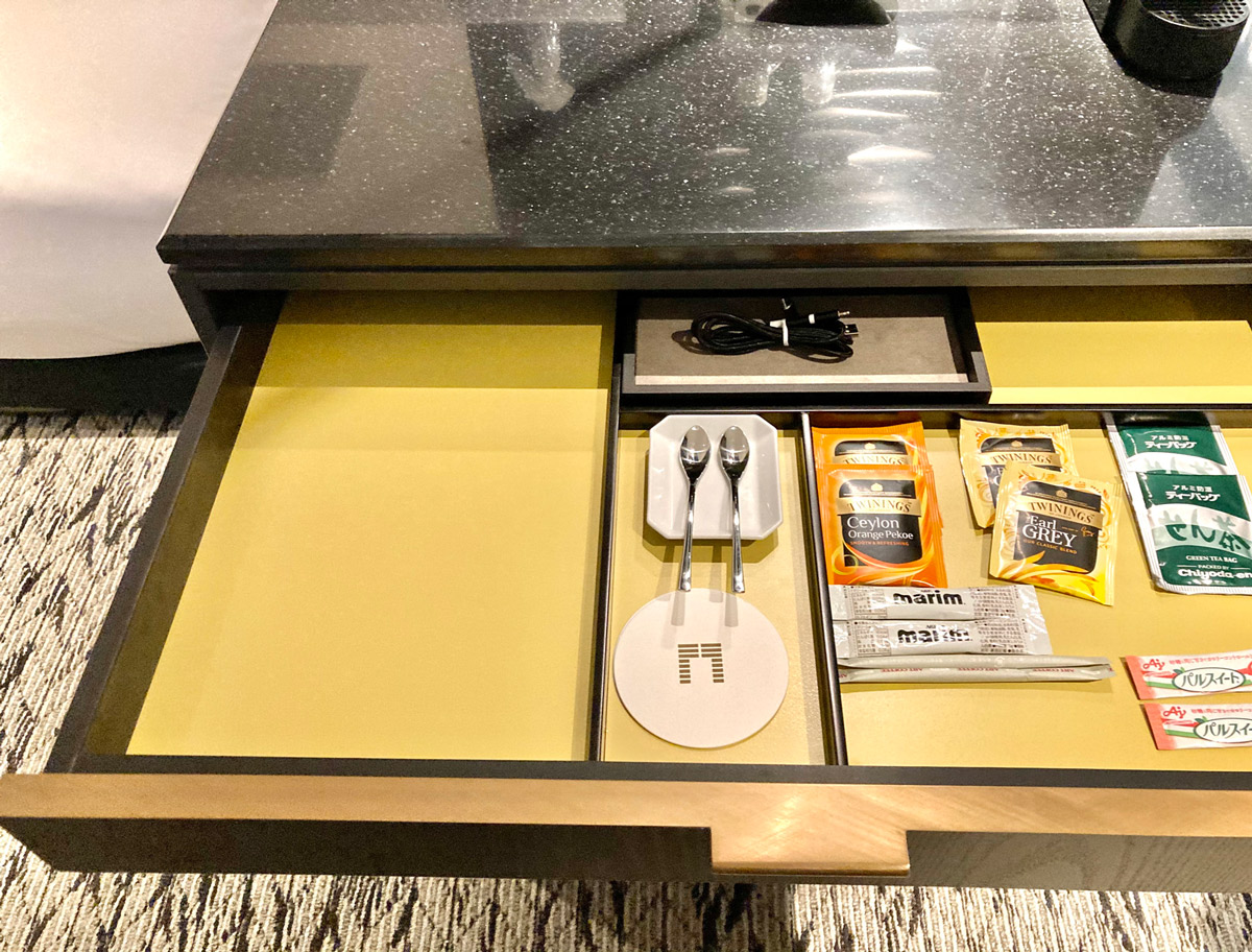 お茶などの他にネスプレッソも全室備え付けられています。二重ガーゼのナイトウェアやアメニティにはオーガニックのスパコスメを用意するなど、おもてなしの心がうれしいですね。