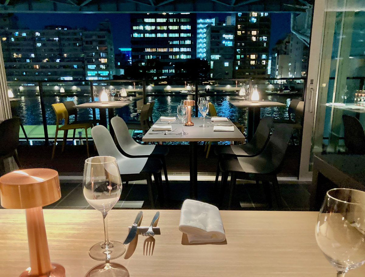 隅田川を望む席はそれだけでロマンチック!過ごしやすい季節にはテラス席もおすすめですよ。