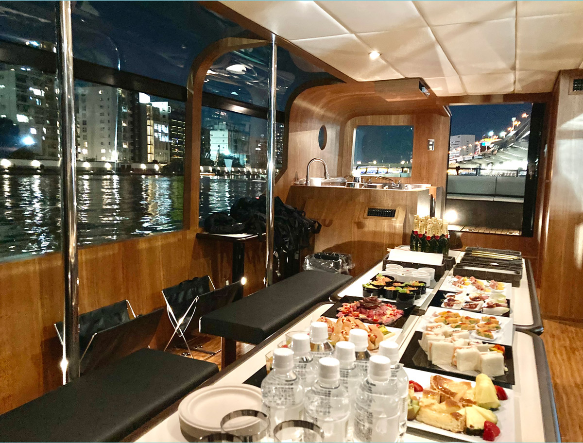 また、宿泊者向けに月に1度開催を予定している「チャータークルーズ」。これは東京ウォーターウェイズ社の所有する船をチャーターするというものです。船上ではホテル特製のフィンガーフードやシャンパン、ワイン、ビールやソフトドリンクの飲み放題が。