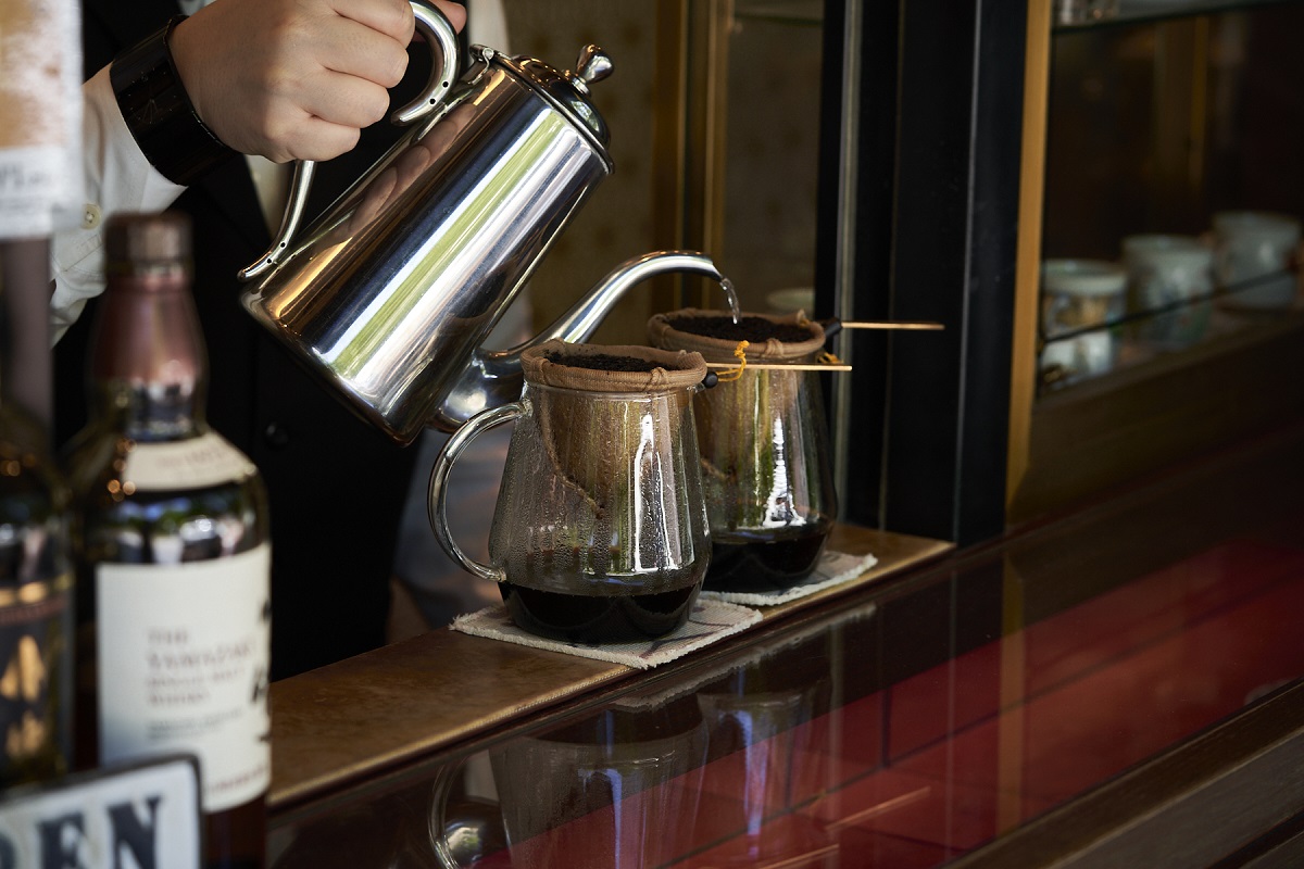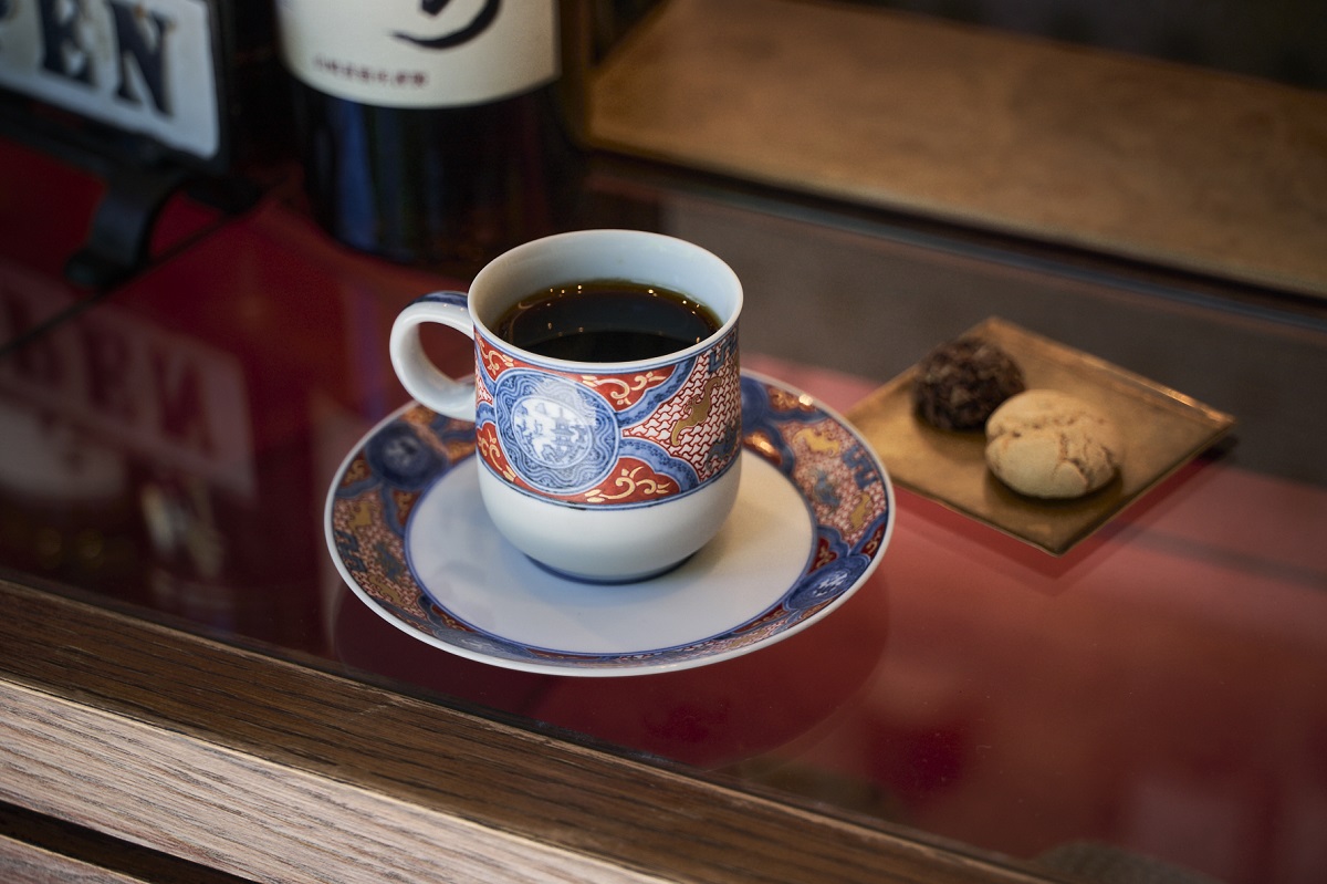 マスターがネルドリップでじっくり淹れる「特製コーヒ」(990円)は、クレープに負けず劣らず絶品!京都のオオヤコーヒ焙煎所の深煎り豆を使用しています。