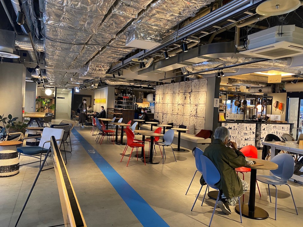 「PLAYatre TSUCHIURA」は、2019年4月に全館リニューアルし、自転車をテーマにした施設に生まれ変わりました。2、3階に広がる「ステーションロビー」は、駅を利用する人が「1時間早く駅に来たくなる日本一の駅の待合室」がテーマで、カフェやレストラン、コワーキングスペースなどが入居しています。私が訪れた日も、仕事をするビジネスマンや、お一人できているおばあさんなどがカフェで一服している様子を発見。美味しいコーヒーをお供に1時間早く仕事を開始するの、いいかもなぁと感じました…!