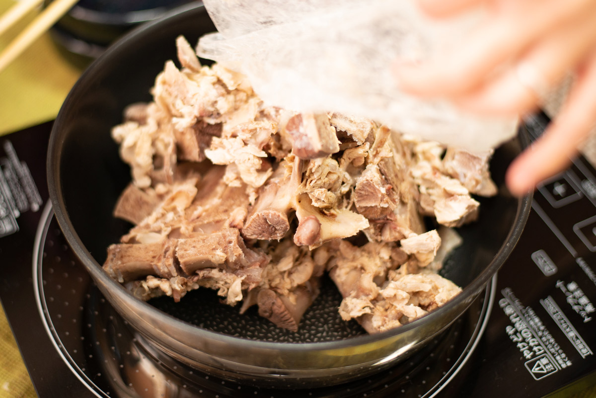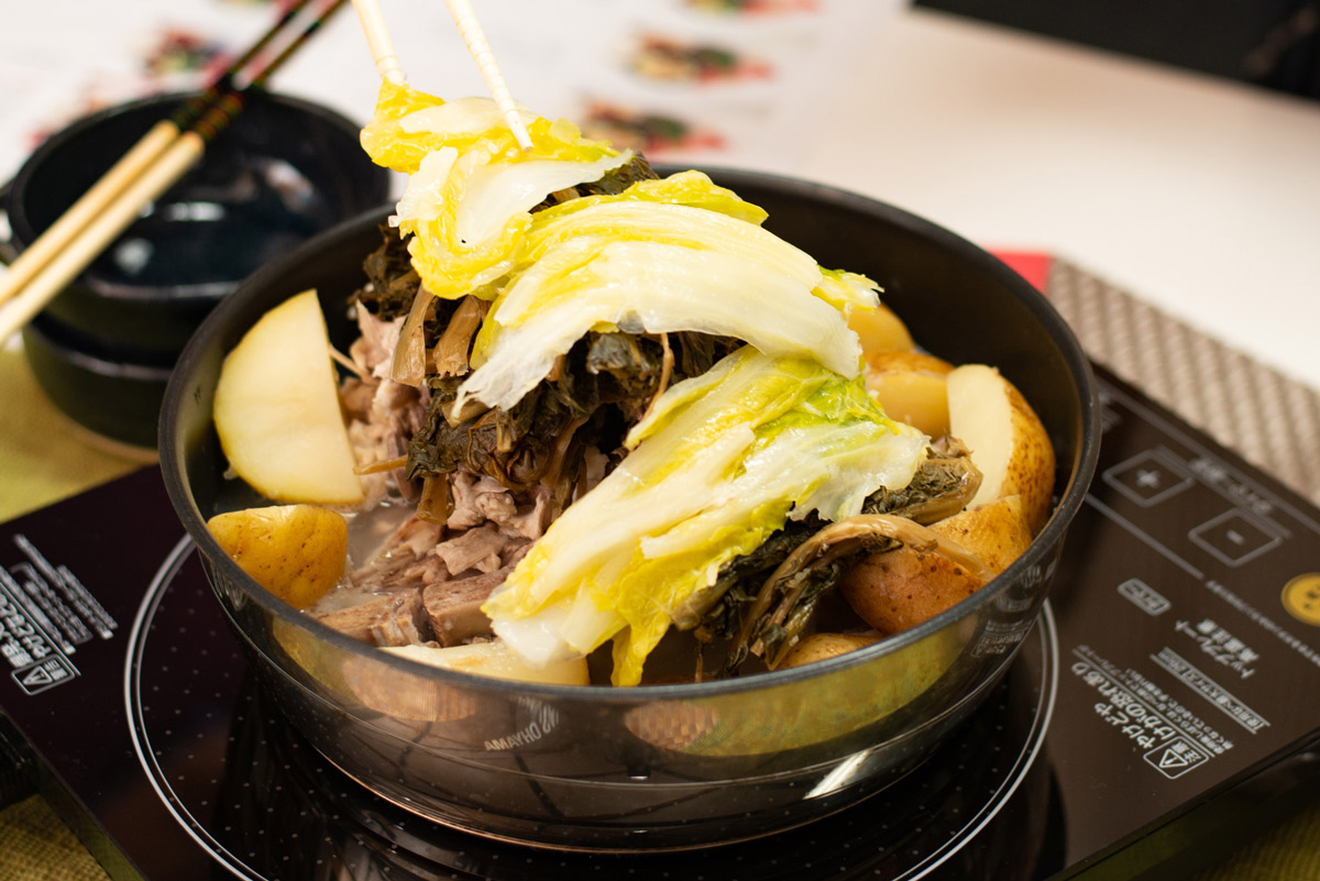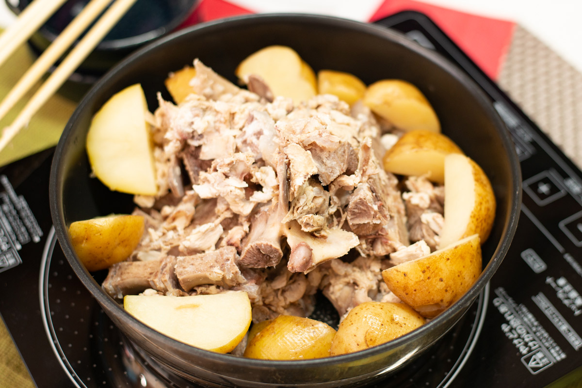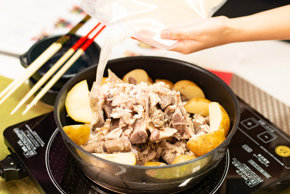 また、すべての下ごしらえが完了しているのも、うれしいポイントです。シレギ、ジャガイモといった野菜は下茹でし、適切なサイズにカット。骨付き肉とロース肉は、加熱処理したうえで、食べやすい大きさにカットされています。