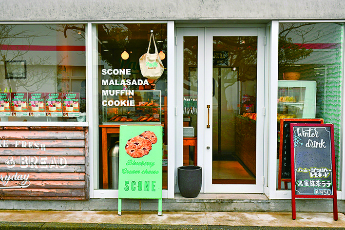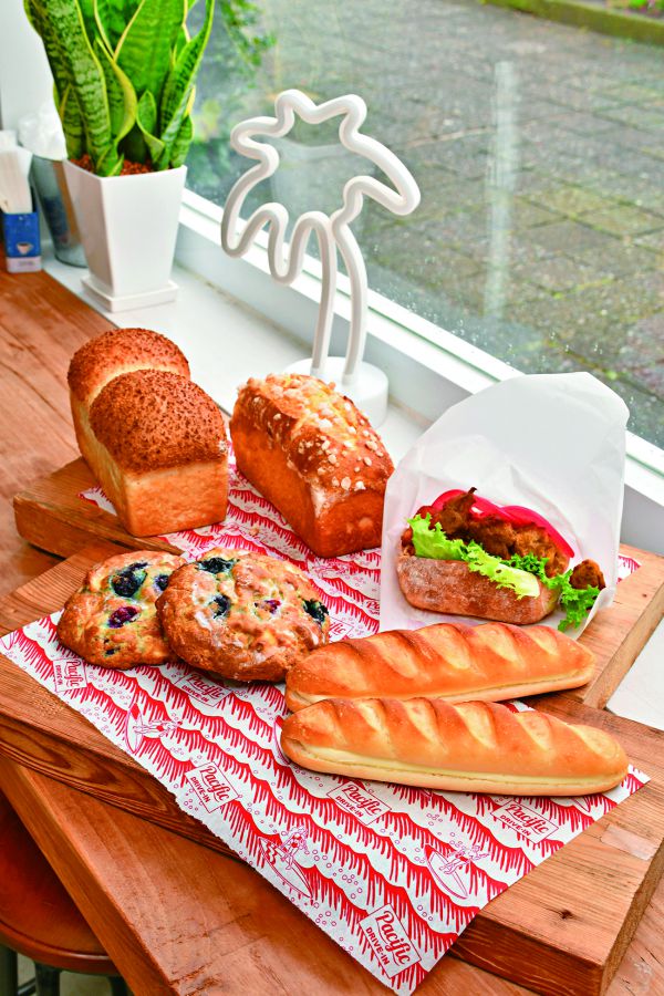 「Pacific DRIVE-IN」の姉妹店「Pacific BAKERY(パシフィック ベーカリー)」。住宅街にオープンしたパンと焼き菓子のお店です。ランチにぴったりな食事パンのほか、スコーンやマフィン、クッキーなども充実しています。練乳クリーム1個220円やブルーベリークリームチーズしこーん1個360円、淡ドリーチキンサンド520円など。
