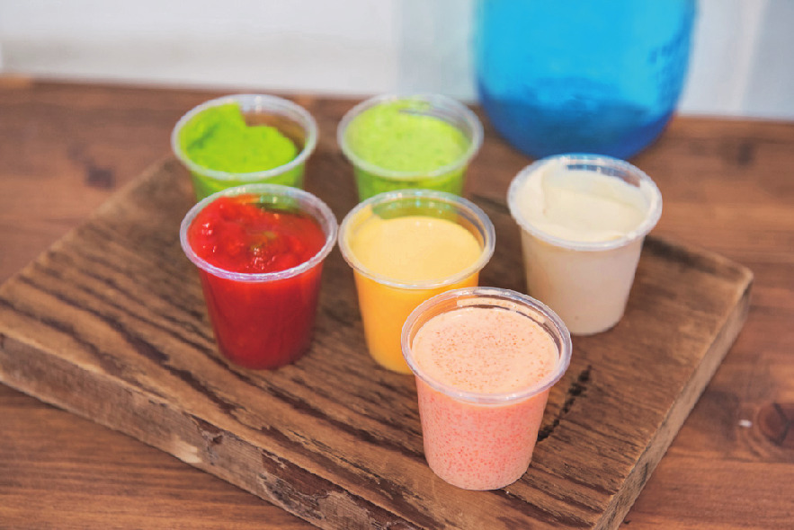 ディップの一番人気は明太マヨ。チェダーチーズやアボカド、スウィートチリも人気。