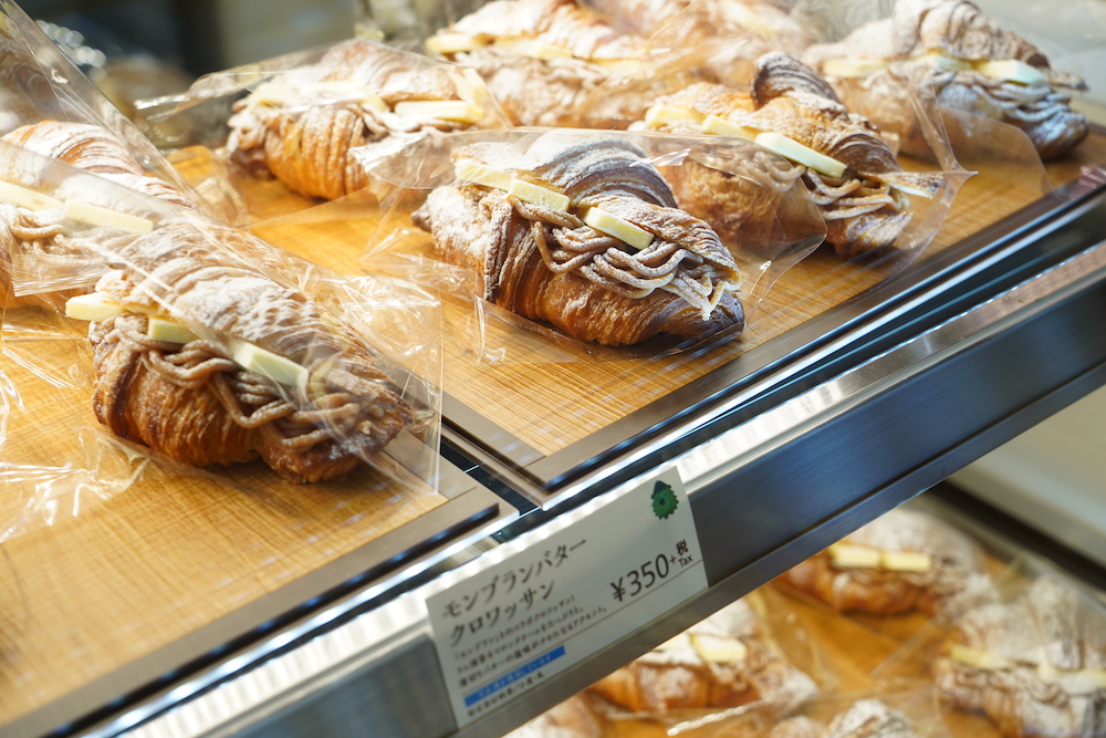 さて、こちらが“新名物”の地位を不動のものにした「モンブランバタークロワッサン」。外はパリッ、内からは溢れるバターとミルクのまろやかさが広がるクロワッサンで、ラム酒の香るモンブランクリームと塩気の効いたバターをサンド。クロワッサン生地、上品なモンブランクリーム、バターの絶妙な塩分のバランスが最高です。