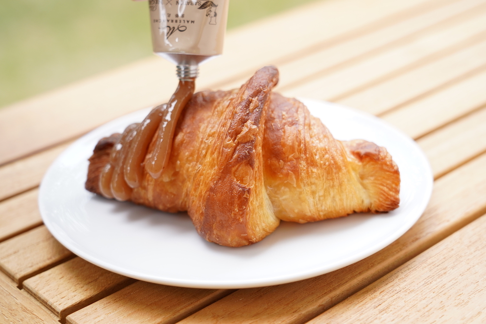 プレーンのクロワッサンにかけて、食べ比べ。クリームはとろりとしていて、芳醇なラム酒の香りが濃厚です。ビスケットやアイスにかけても良さそう。おうちのティータイムが楽しくなりそうな一品です。