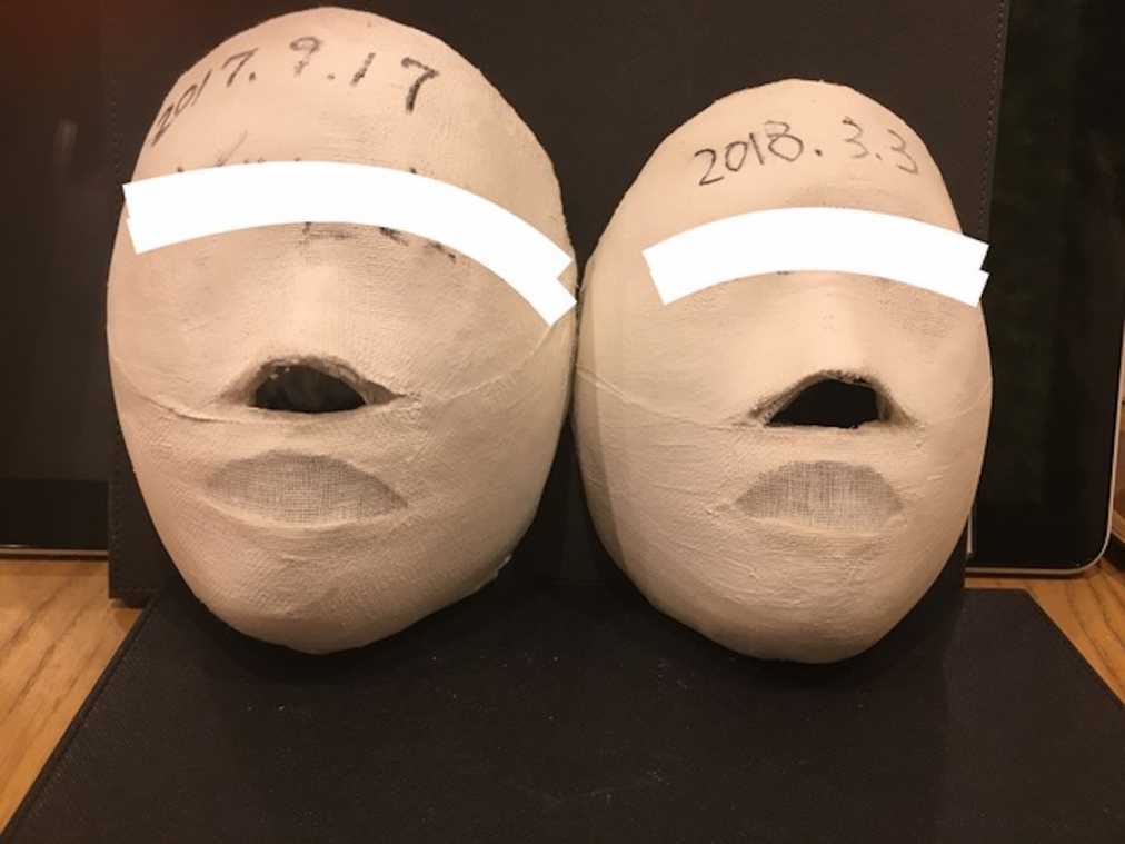 “黄金比率管理”は、1回、10回、20回のコースがあります。施術前と10回終了ごとに石膏で顔型を取ります。写真は左がビフォアで右がアフター。輪郭が一回り小さくなっていて驚くような効果です!