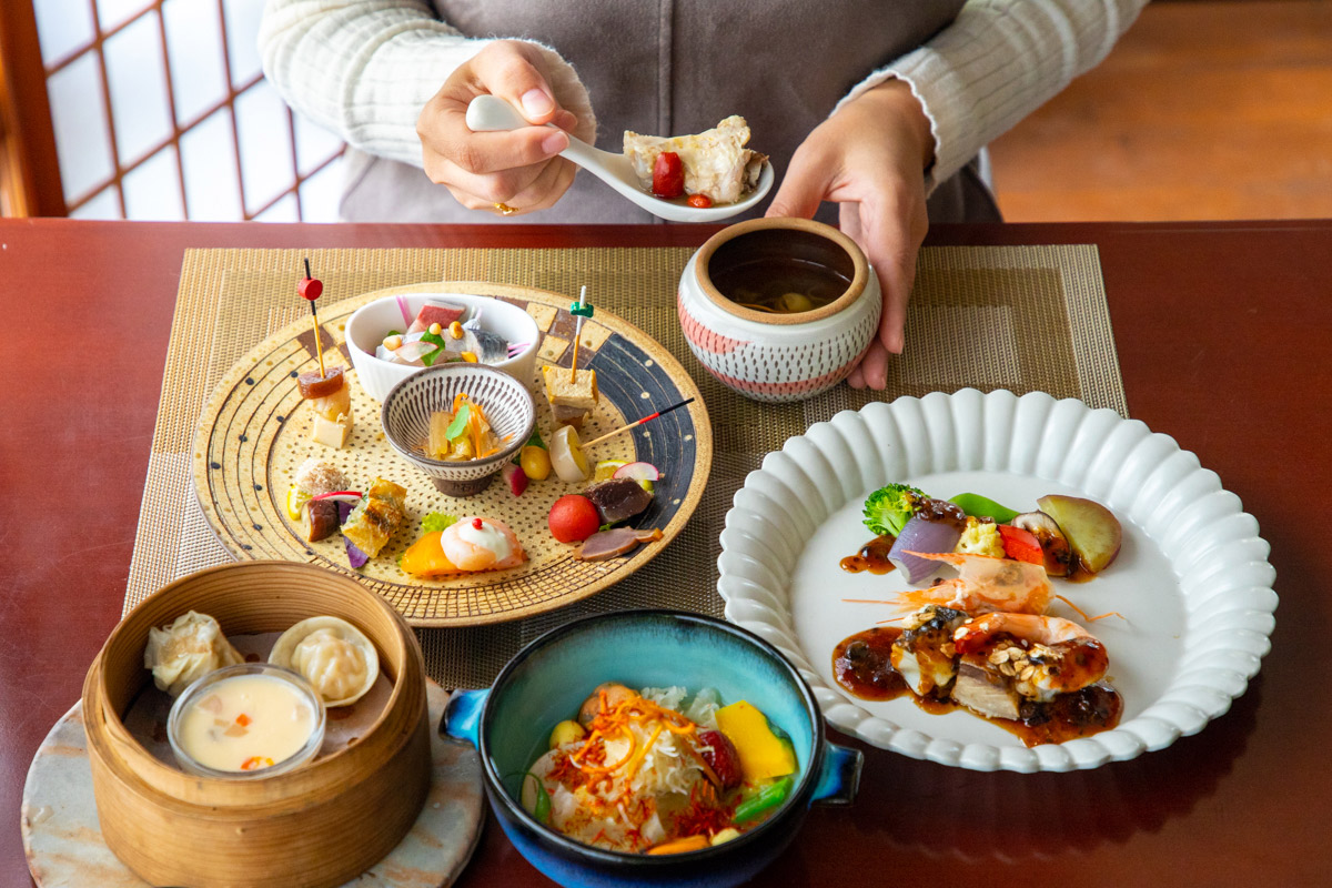 街のいたるところから湯けむりが上がる鉄輪温泉。温泉の蒸気で食材を蒸す地獄蒸しが名物です。「蒸士茶楼(むしちゃろう)」は、蒸気工学に基づく独自の低温スチーム調理法で、滋味あふれる優しい味わいの薬膳中華料理を提供しています。