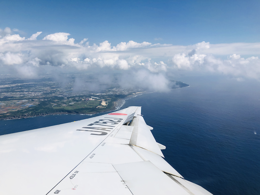 マスク、手袋を着用してサービスされるドリンクをいただいて、あっと言う間の空の旅。