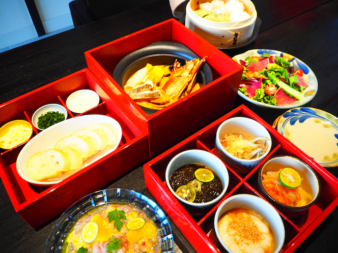 2人分の和食・洋食のセットメニューやアラカルトがあって組み合わせも可能。セットを冷蔵庫に入れておいて、レンジなどで食べる直前に自分たちで仕上げます。動画での説明もあって簡単に出来るので驚き。ゲスト同志でプライベートに食事が楽しめるのが何より魅力です。