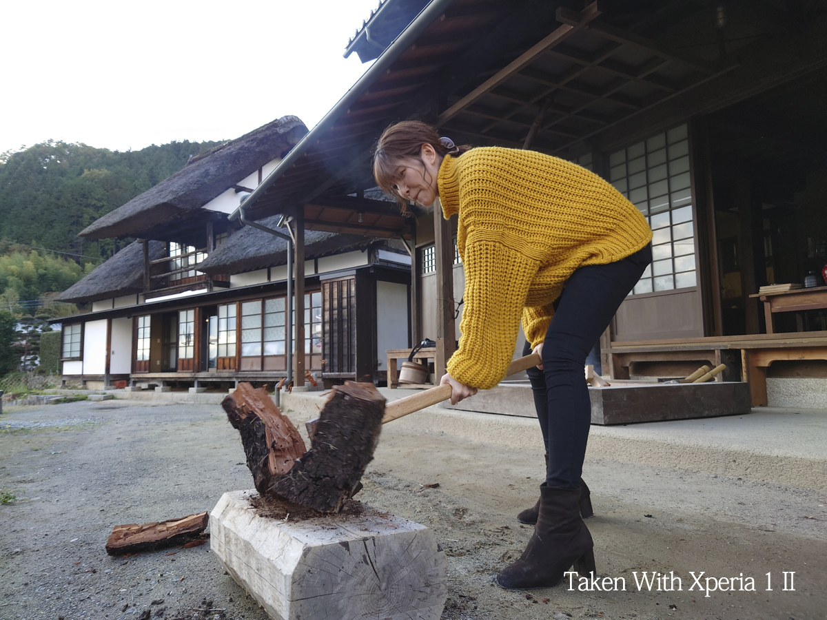ゆっくりとくつろぐだけでなく、貴重な体験ができるのも「もしもしの家」の魅力。まずは薪割りにチャレンジです!全身を使って器用に薪を割っていきます。割った薪は何に使うのか……後からのお楽しみ♪