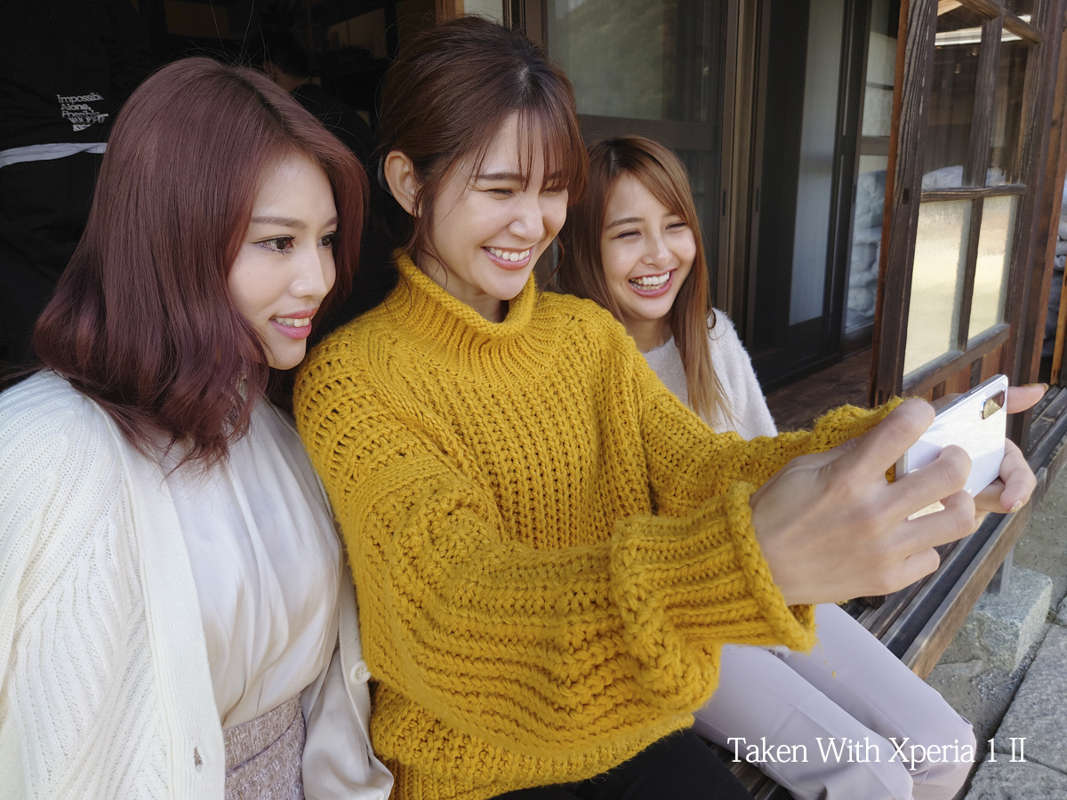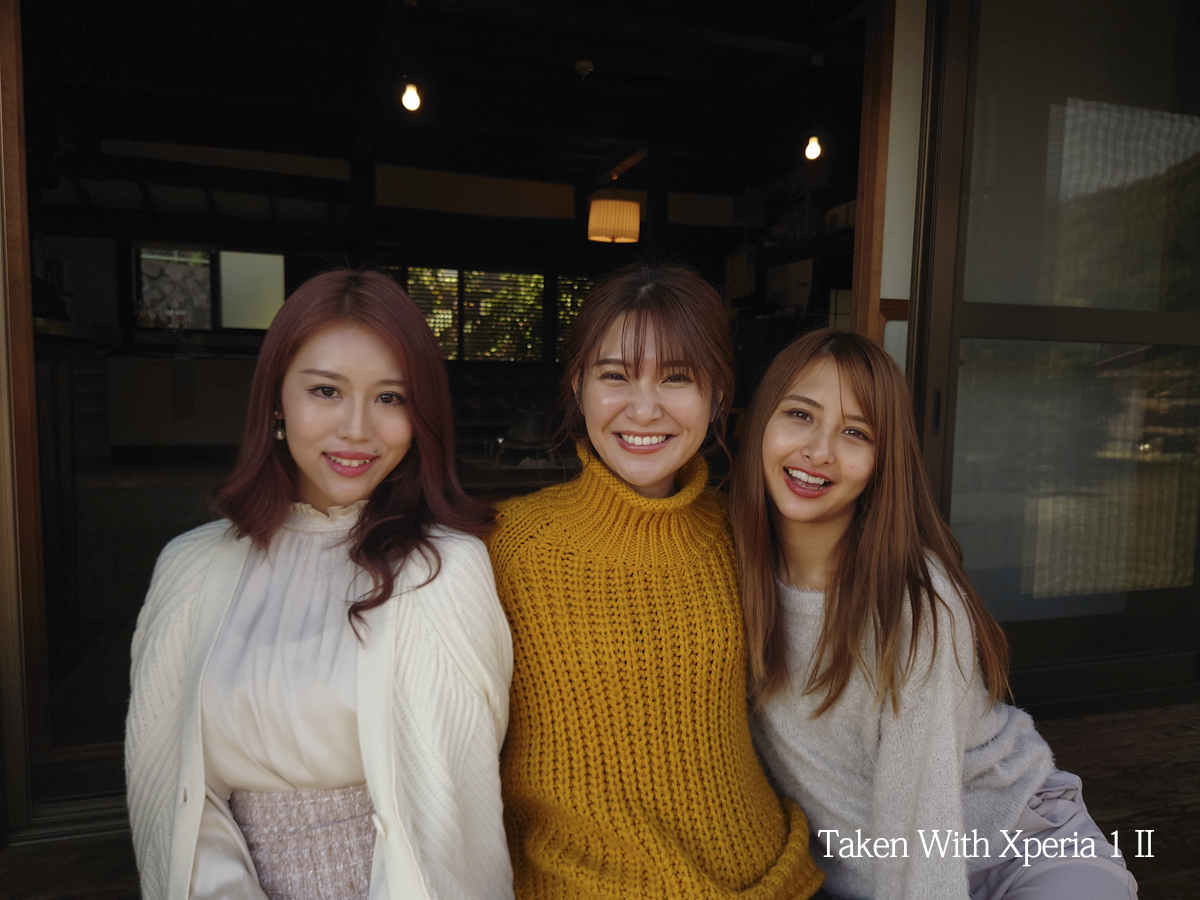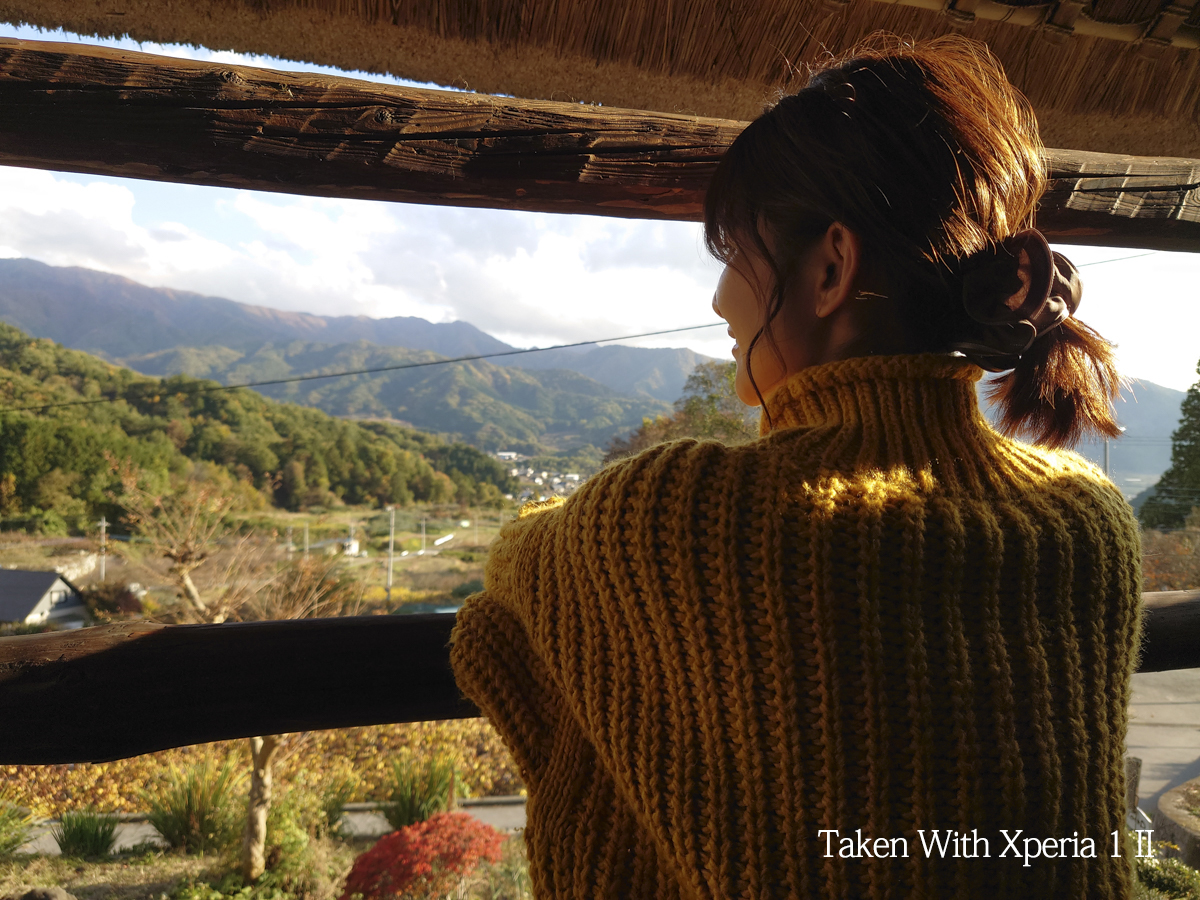 「もしもしの家」は、一日一組限定の「一棟貸し」のため周りを気にせず大切な人とまったりとした時間が過ごせます。そんな時間におすすめなのが、風が吹き抜ける縁側。「縁側って気持ちいいね!ここは秘密にしたいくらい気に入りました!」と田尻さんも大満足!友人と一緒に記念写真をパチリ。Xperia 1 IIならフロントカメラでもきれいな写真が撮れちゃいます。超広角、望遠、標準のトリプルレンズを搭載し、シーンごとにレンズを自在に切り替えるため、友人との密着したショットから雄大な田舎の風景まで、どんな景色も美しく残すことが可能です。