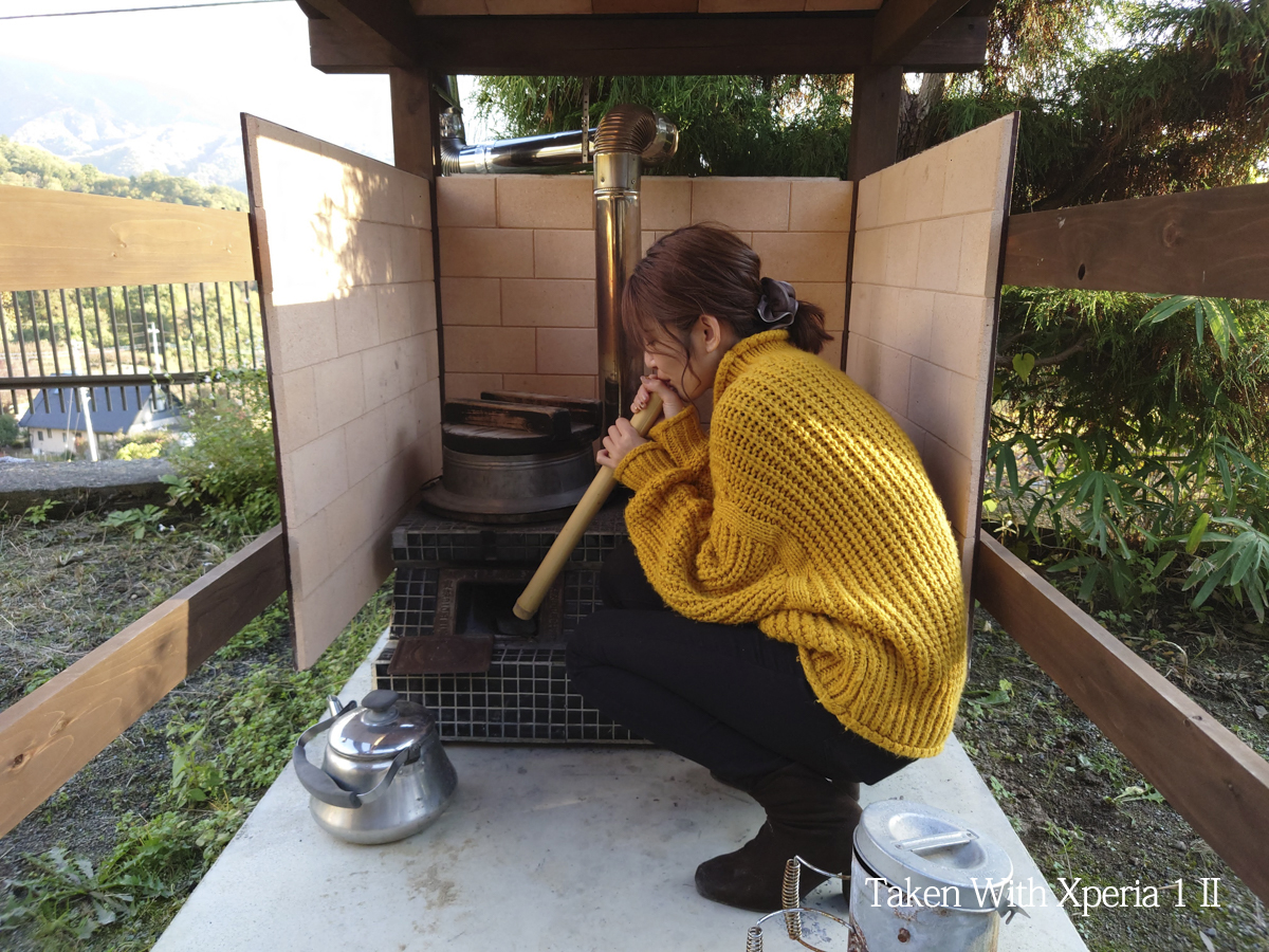 もしもしの家は昔ながらのかまども完備。一生懸命割った薪はここで使うんですね!かまどを使って炊いたご飯は別格の味わい!田尻さんも一生懸命火を起こしていきます。