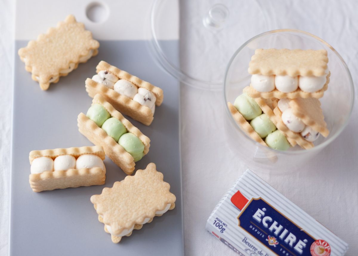 「サブレ サンド」各324円は、しっとり食感のサブレ生地にバタークリームをサンド。