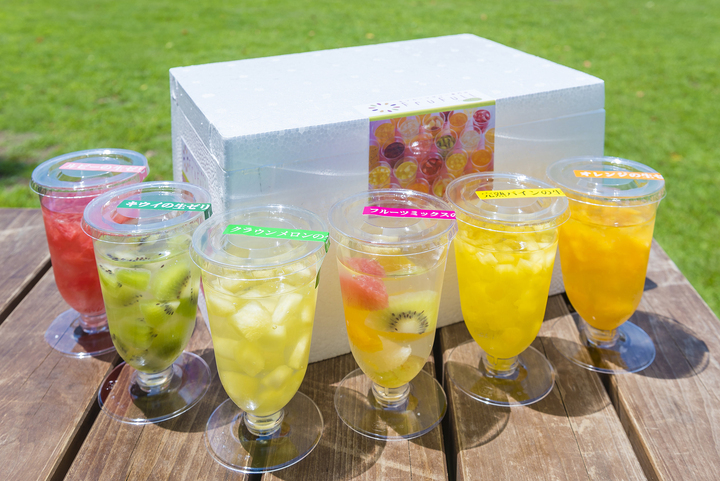 今ネットで購入できるのは「フルーツミックスゼリー」の6個セット。キウイやピンクグレープフルーツなど、みずみずしいフルーツがやわらかいゼリーに包まれたフルーツミックスゼリーは何個でも食べられちゃいそう。