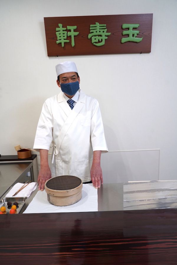 自身では初となるイートインできるお店『茶寮SENTAMA』では、茶道の世界ではおなじみでも、日々のおやつとしては親しみの薄い上生菓子を、「作る過程から見せることで、もっと身近に感じてもらいたい」と、生菓子をその場で作って提供。