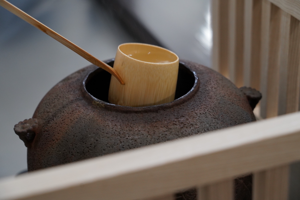 店のある西陣エリアでは、少し路地に入り込めばいまも伝統工芸、西陣織の織機の音が聞こえてきます。観光名所というわけではありませんが、「岩上神社」のあたりの街並は風情があるので、行き帰りに散策してみても面白いかも。さて、茶寮へは靴を脱いでお二階へあがります。